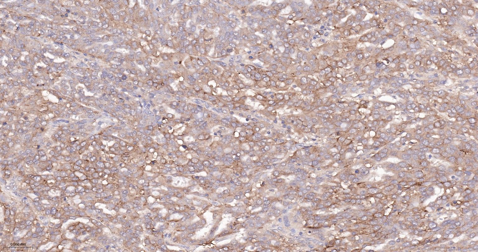 Paraformaldehyde-fixed, paraffin embedded Human Invasive urothelial carcinoma of the bladd; Antigen retrieval by boiling in sodium citrate buffer (pH6.0) for 15 min; The section was incubated with TFRC Monoclonal Antibody, Unconjugated (bsm-54633R) at 1:200 overnight at 4°C, followed by conjugation to the bs-0295G-HRP and DAB (C-0010) staining.