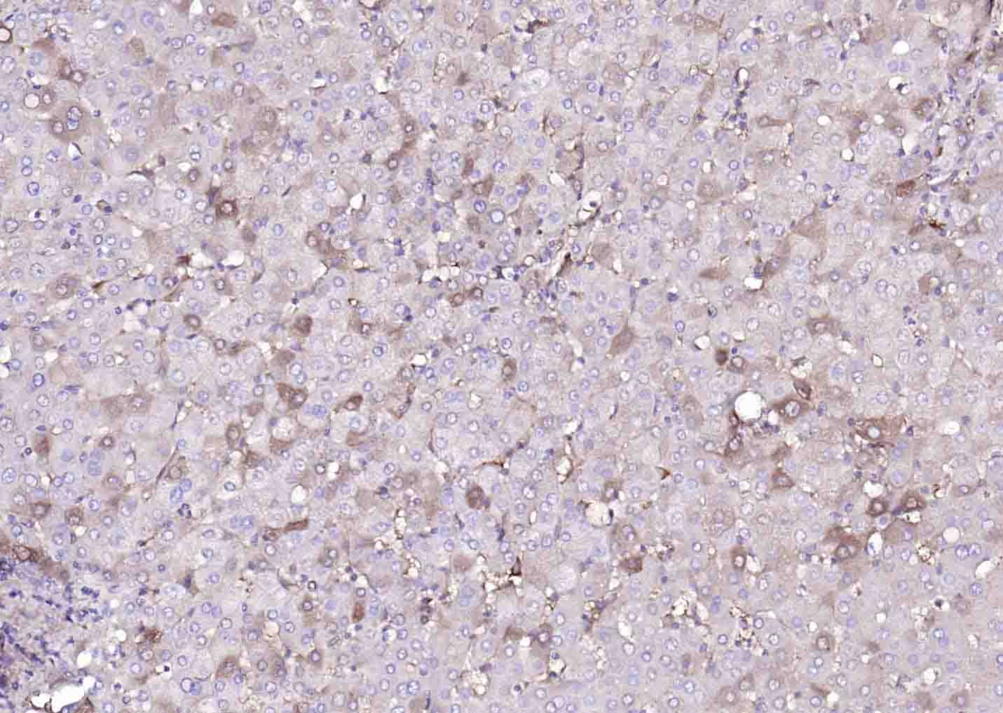 Paraformaldehyde-fixed, paraffin embedded (human liver); Antigen retrieval by boiling in sodium citrate buffer (pH6.0) for 15min; Block endogenous peroxidase by 3% hydrogen peroxide for 20 minutes; Blocking buffer (normal goat serum) at 37°C for 30min; Antibody incubation with (PTH1R) Polyclonal Antibody, Unconjugated (bs-43107R) at 1:200 overnight at 4°C, followed by operating according to SP Kit(Rabbit) (sp-0023) instructionsand DAB staining.