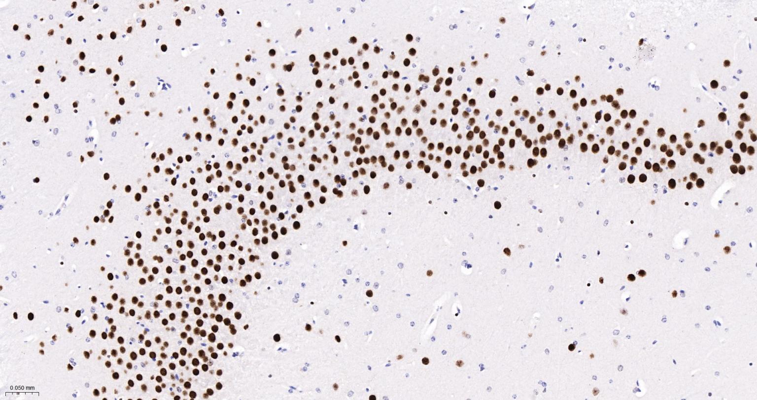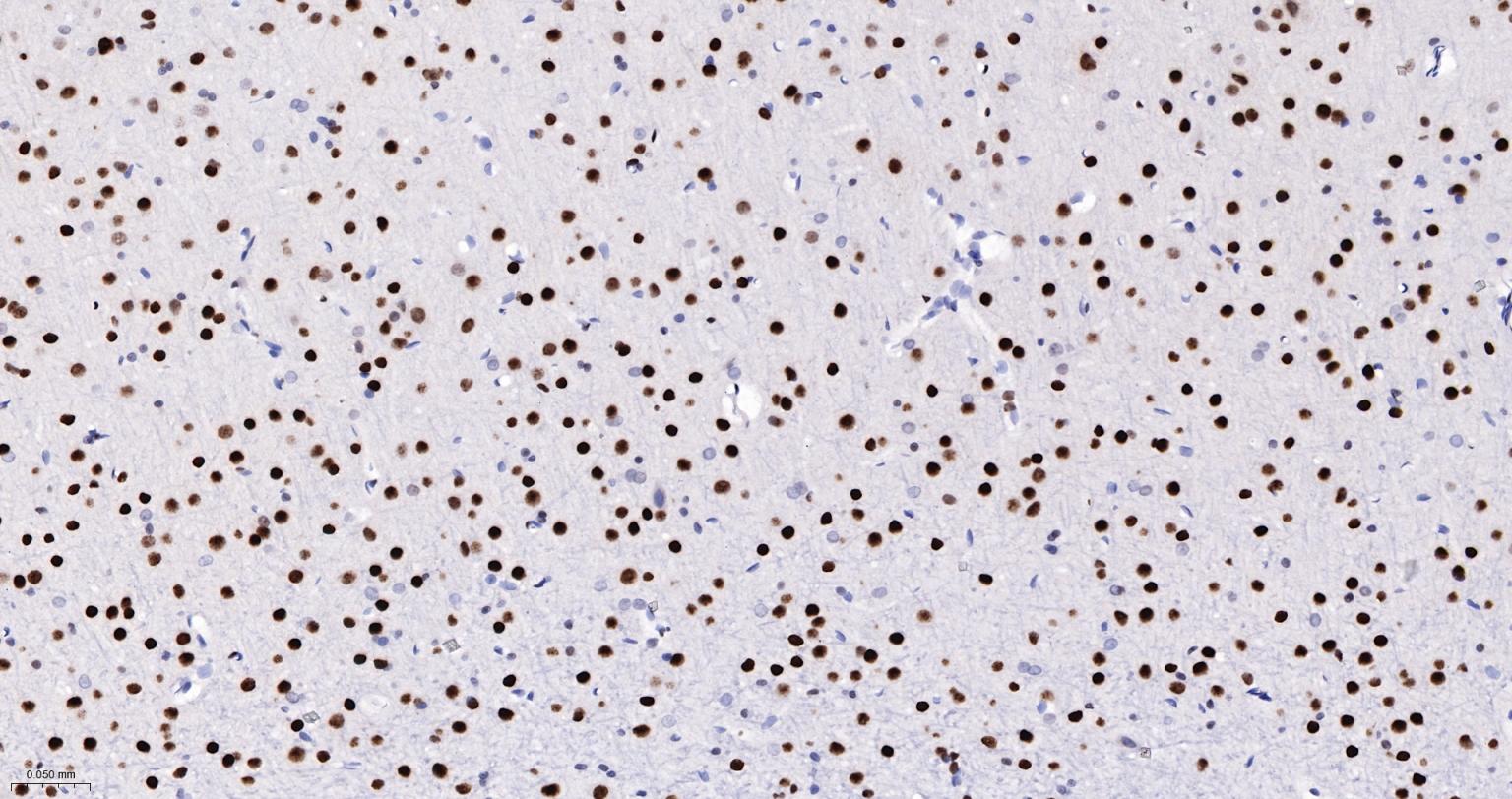 Paraformaldehyde-fixed, paraffin embedded Rat Cerebrum; Antigen retrieval by boiling in sodium citrate buffer (pH6.0) for 15 min; The section was incubated with CBX4 Monoclonal Antibody, Unconjugated (bsm-60681R) at 1:200 overnight at 4°C, followed by conjugation to the bs-0295G-HRP and DAB (C-0010) staining.