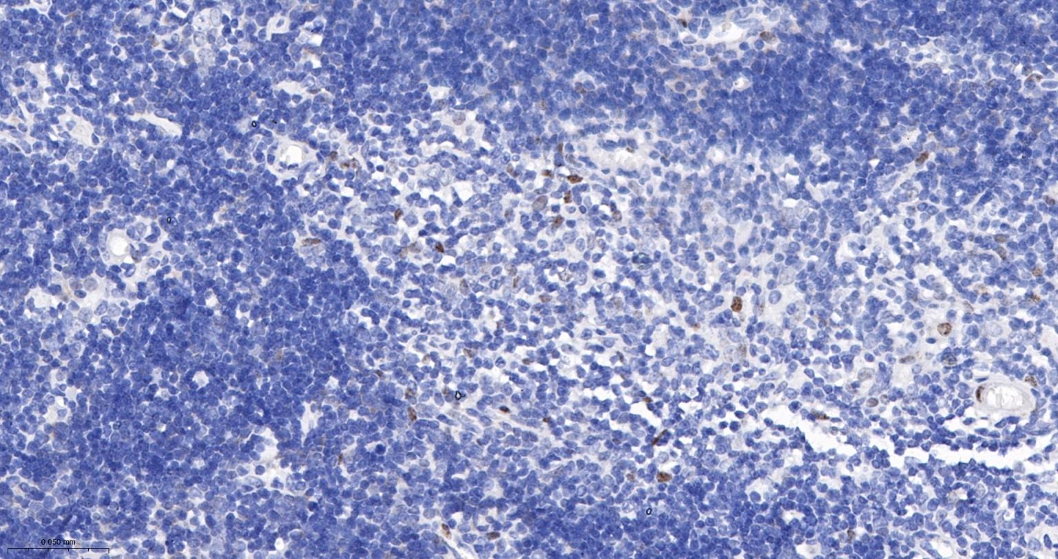 Paraformaldehyde-fixed, paraffin embedded Mouse Thymus; Antigen retrieval by boiling in sodium citrate buffer (pH6.0) for 15 min; The section was incubated with CBX4 Monoclonal Antibody, Unconjugated (bsm-60681R) at 1:200 overnight at 4°C, followed by conjugation to the bs-0295G-HRP and DAB (C-0010) staining.