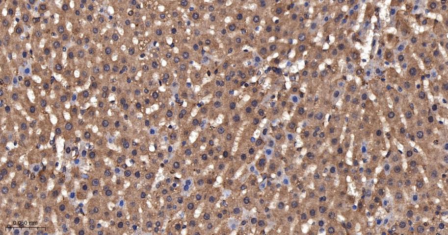 Paraformaldehyde-fixed, paraffin embedded Mouse Liver; Antigen retrieval by boiling in sodium citrate buffer (pH6.0) for 15 min; The section was incubated with PDHA1 Monoclonal Antibody, Unconjugated (bsm-60685R) at 1:200 overnight at 4°C, followed by conjugation to the bs-0295G-HRP and DAB (C-0010) staining.