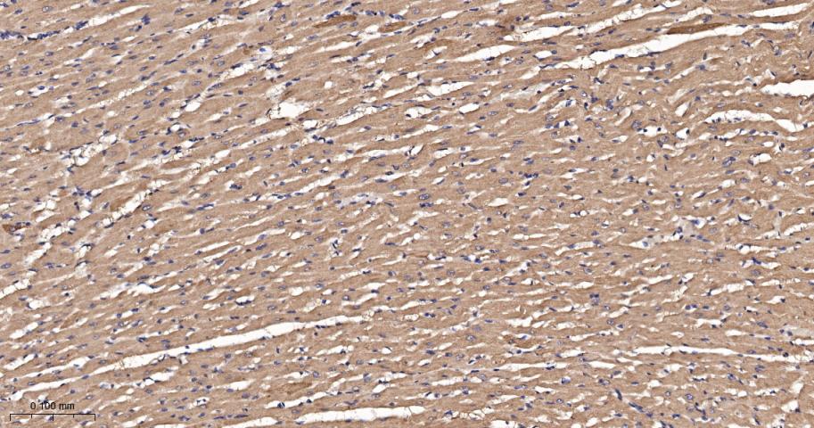 Paraformaldehyde-fixed, paraffin embedded Rat Heart; Antigen retrieval by boiling in sodium citrate buffer (pH6.0) for 15 min; The section was incubated with PDHA1 Monoclonal Antibody, Unconjugated (bsm-60685R) at 1:200 overnight at 4°C, followed by conjugation to the bs-0295G-HRP and DAB (C-0010) staining.