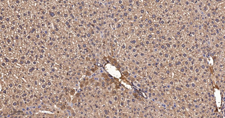 Paraformaldehyde-fixed, paraffin embedded Rat Liver; Antigen retrieval by boiling in sodium citrate buffer (pH6.0) for 15 min; The section was incubated with PDHA1 Monoclonal Antibody, Unconjugated (bsm-60685R) at 1:200 overnight at 4°C, followed by conjugation to the bs-0295G-HRP and DAB (C-0010) staining.