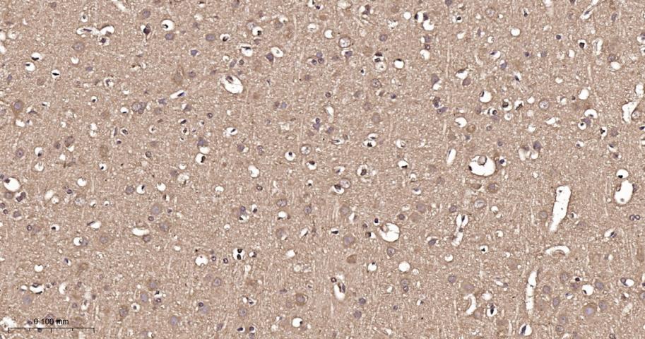 Paraformaldehyde-fixed, paraffin embedded Rat Cerebrum; Antigen retrieval by boiling in sodium citrate buffer (pH6.0) for 15 min; The section was incubated with FKBP52 Monoclonal Antibody, Unconjugated (bsm-60690R) at 1:200 overnight at 4°C, followed by conjugation to the bs-0295G-HRP and DAB (C-0010) staining.