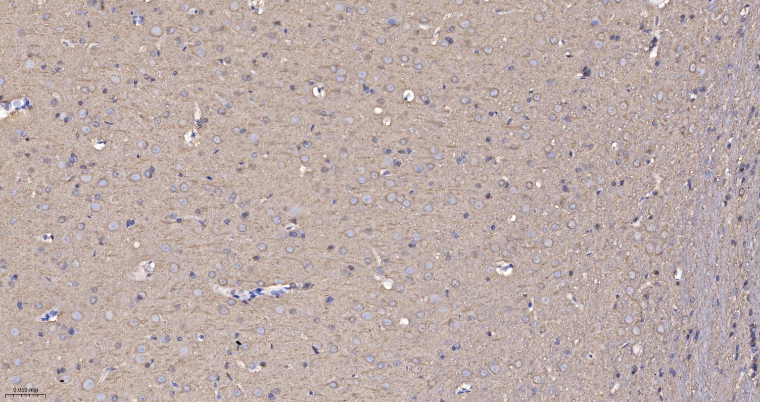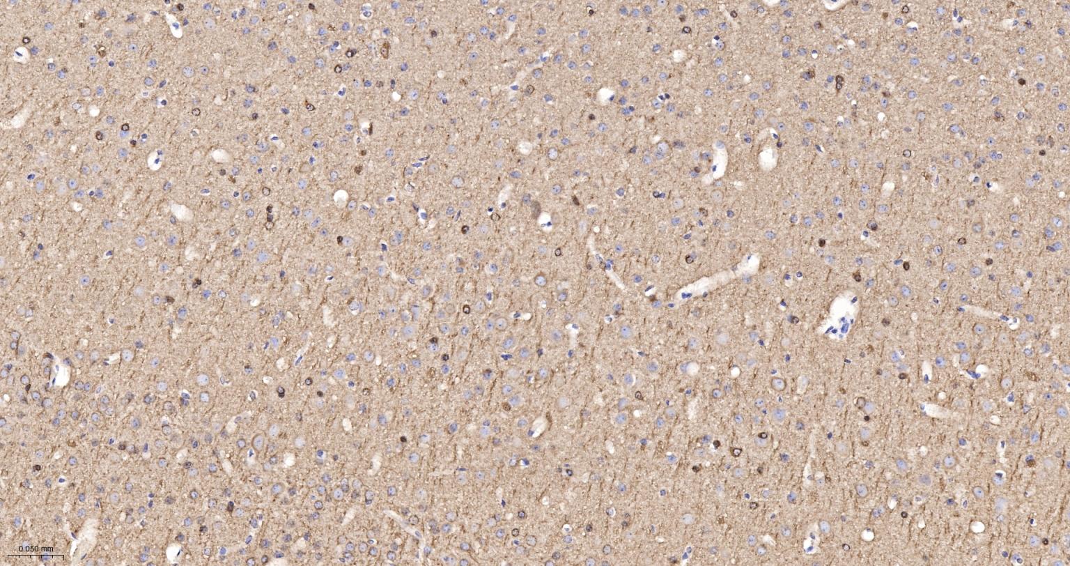Paraformaldehyde-fixed, paraffin embedded Rat Cerebrum; Antigen retrieval by boiling in sodium citrate buffer (pH6.0) for 15 min; The section was incubated with Alpha Tubulin (Acetyl-Lys40) Monoclonal Antibody, Unconjugated (bsm-60706R) at 1:100 overnight at 4°C, followed by conjugation to the bs-0295G-HRP and DAB (C-0010) staining.