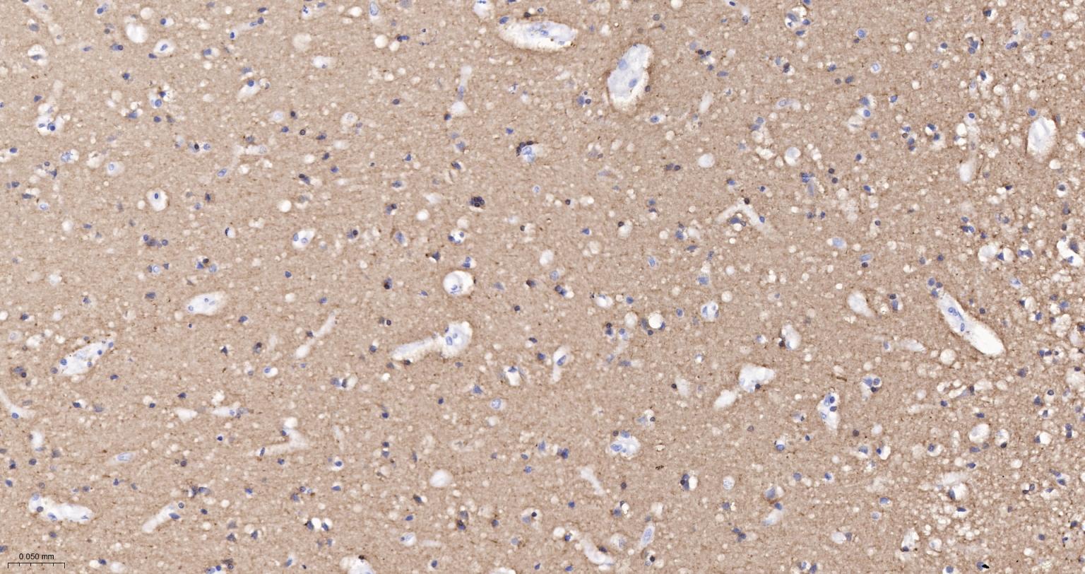 Paraformaldehyde-fixed, paraffin embedded Human Right temporal lobe; Antigen retrieval by boiling in sodium citrate buffer (pH6.0) for 15 min; The section was incubated with Alpha Tubulin (Acetyl-Lys40) Monoclonal Antibody, Unconjugated (bsm-60706R) at 1:100 overnight at 4°C, followed by conjugation to the bs-0295G-HRP and DAB (C-0010) staining.