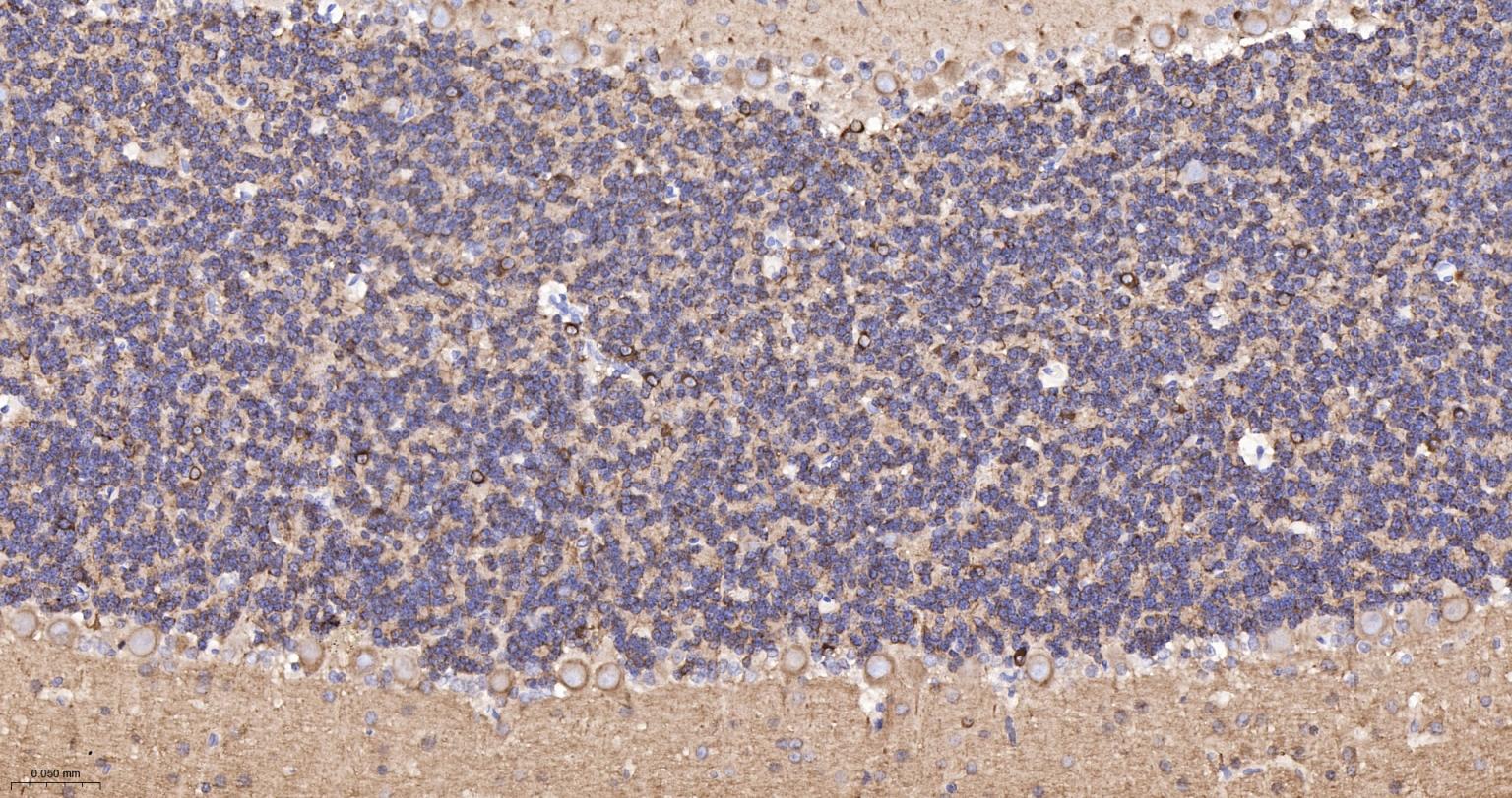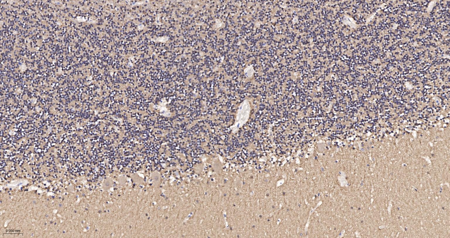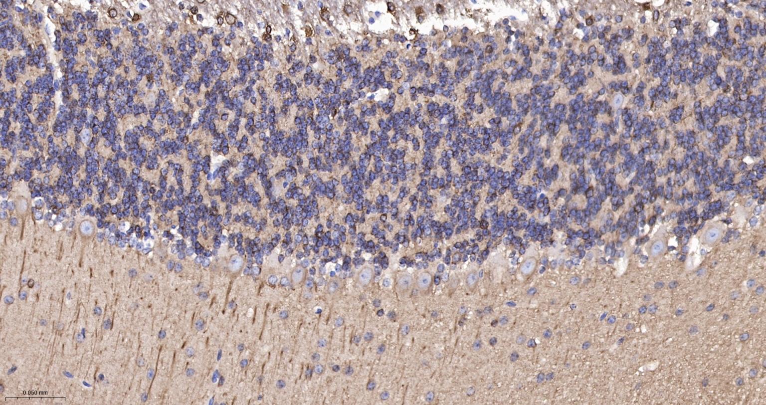 Paraformaldehyde-fixed, paraffin embedded Rat Cerebellum; Antigen retrieval by boiling in sodium citrate buffer (pH6.0) for 15 min; The section was incubated with Alpha Tubulin (Acetyl-Lys40) Monoclonal Antibody, Unconjugated (bsm-60706R) at 1:100 overnight at 4°C, followed by conjugation to the bs-0295G-HRP and DAB (C-0010) staining.
