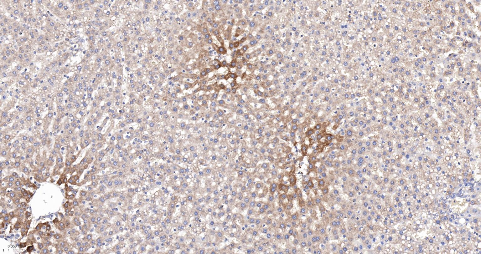 Paraformaldehyde-fixed, paraffin embedded Mouse Liver; Antigen retrieval by boiling in sodium citrate buffer (pH6.0) for 15 min; The section was incubated with Citrate synthase Monoclonal Antibody, Unconjugated (bsm-54190R) at 1:200 overnight at 4°C, followed by conjugation to the bs-0295G-HRP and DAB (C-0010) staining.