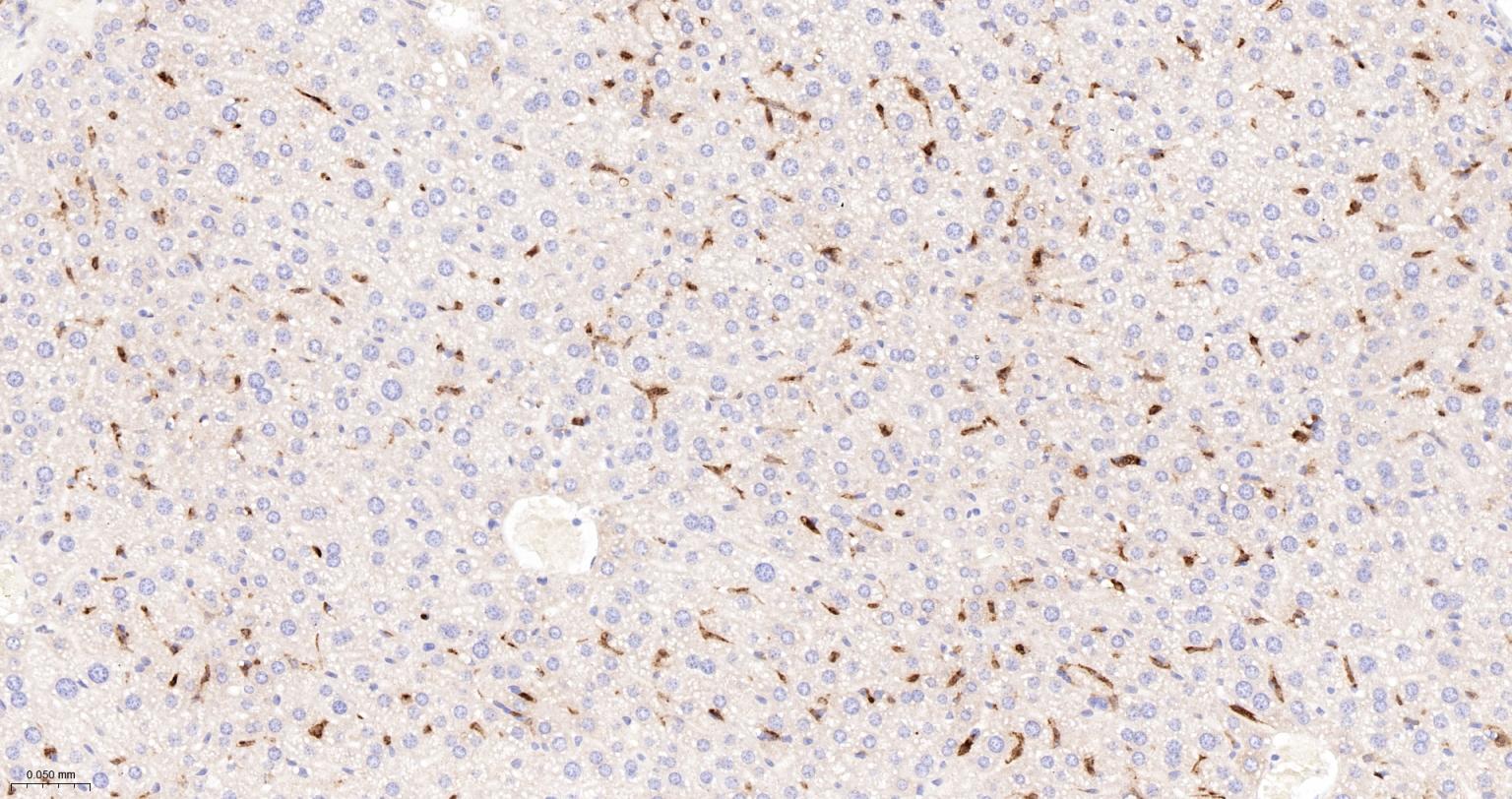 Paraformaldehyde-fixed, paraffin embedded Mouse Liver; Antigen retrieval by boiling in sodium citrate buffer (pH6.0) for 15 min; The section was incubated with Heme Oxygenase 1 Monoclonal Antibody, Unconjugated (bsm-60751R) at 1:200 overnight at 4°C, followed by conjugation to the bs-0295G-HRP and DAB (C-0010) staining.