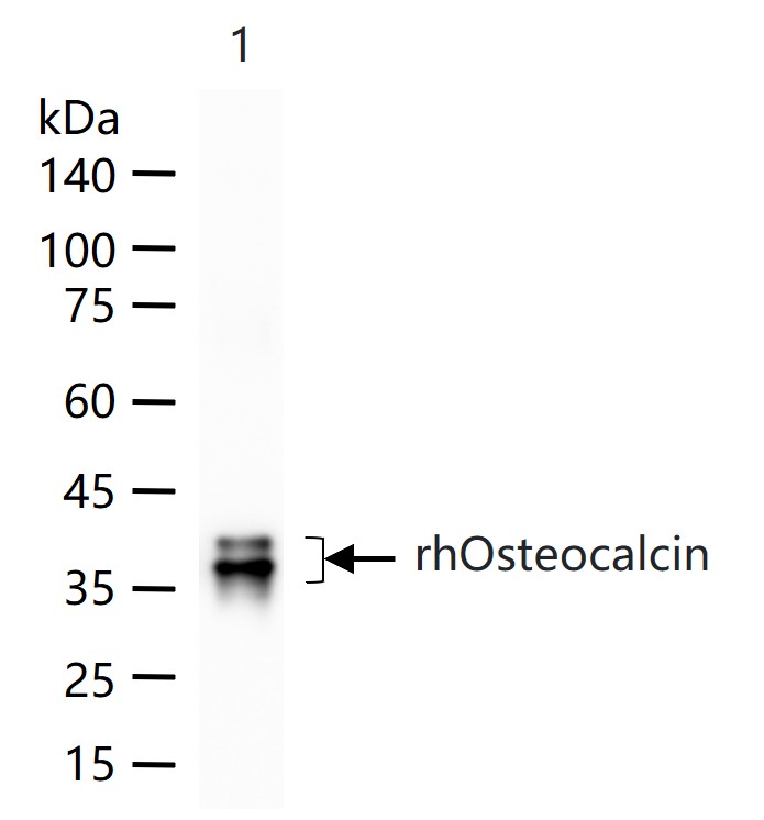 Osteocalcin belongs to the osteocalcin/matrix Gla protein family and constitutes 1 to 2% of the total bone protein. It is a 49 amino acid single chain vitamin K dependent protein, made by osteoblasts, and is a major component of the noncollagenous bone matrix. Post translational modification by a vitamin K dependent carboxylase produces three gamma carboxyglutamic acid residues at positions 17, 21 and 24, giving it a high affinity for calcium. It also binds strongly to apatite. Function: Constitutes 1-2% of the total bone protein. It binds strongly to apatite and calcium. Subcellular Location: Secreted. Post-translational modifications: Gamma-carboxyglutamate residues are formed by vitamin K dependent carboxylation. These residues are essential for the binding of calcium. Similarity: Belongs to the osteocalcin/matrix Gla protein family.Contains 1 Gla (gamma-carboxy-glutamate) domain. SWISS: P02818 Gene ID: 632 Database links: Entrez Gene: 632 Human Omim: 112260 Human SwissProt: P02818 Human Unigene: 654541 Human Unigene: 9722 Rat 骨钙素又称骨γ-羧谷氨酸包含蛋白 |