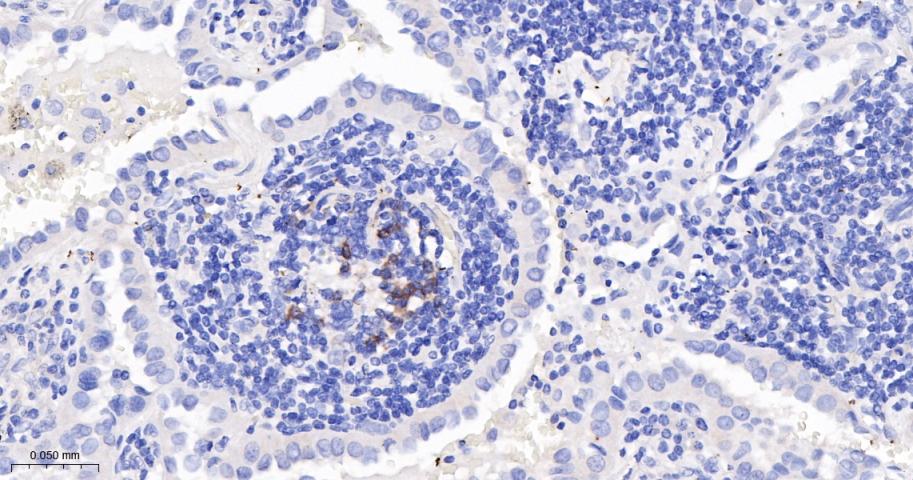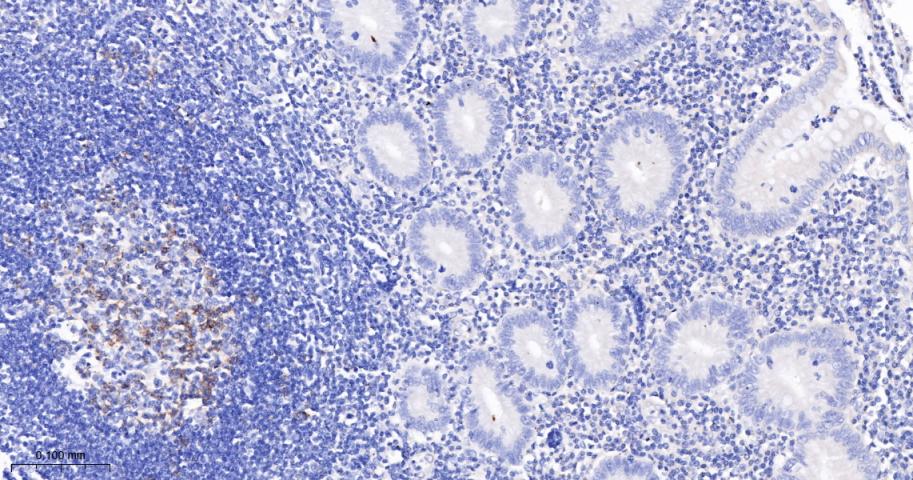 Paraformaldehyde-fixed, paraffin embedded Human Pyogenic appendicitis; Antigen retrieval by boiling in sodium citrate buffer (pH6.0) for 15 min; The section was incubated with PD-1 Monoclonal Antibody, Unconjugated (bsm-43072M) at 1:200 overnight at 4°C, followed by conjugation to the bs-40296G-HRP and DAB (C-0010) staining.