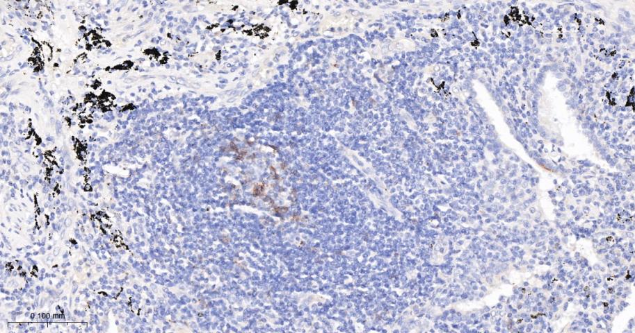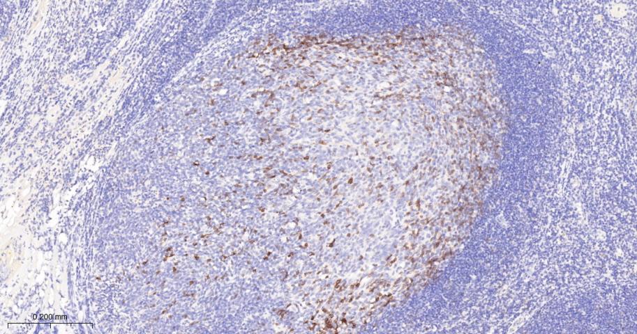 Paraformaldehyde-fixed, paraffin embedded Human Tonsil; Antigen retrieval by boiling in sodium citrate buffer (pH6.0) for 15 min; The section was incubated with PD-1 Monoclonal Antibody, Unconjugated (bsm-43072M) at 1:200 overnight at 4°C, followed by conjugation to the bs-40296G-HRP and DAB (C-0010) staining.