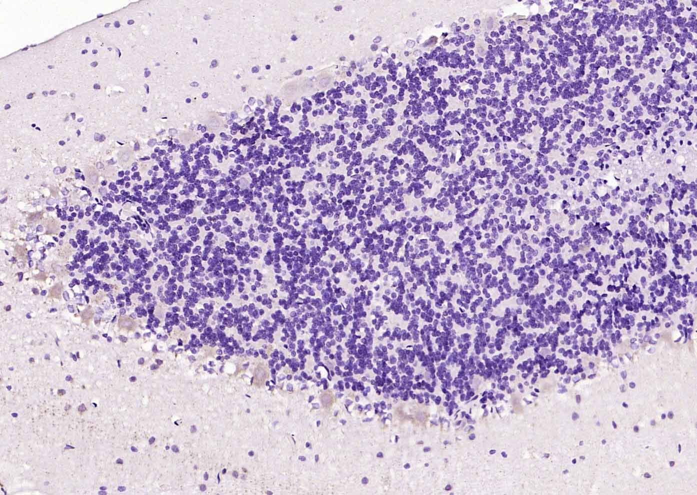 Paraformaldehyde-fixed, paraffin embedded (mouse cerebellum); Antigen retrieval by boiling in sodium citrate buffer (pH6.0) for 15min; Block endogenous peroxidase by 3% hydrogen peroxide for 20 minutes; Blocking buffer (normal goat serum) at 37°C for 30min; Incubation with (Cyclin G2) Polyclonal Antibody, Unconjugated (bs-25632R) at 1:200 overnight at 4°C, followed by operating according to SP Kit(Rabbit) (sp-0023) instructionsand DAB staining.