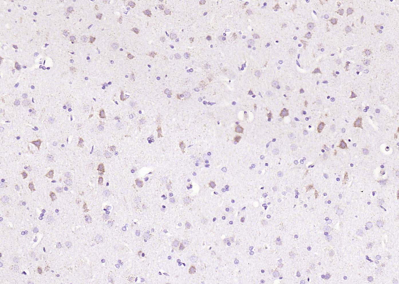 Paraformaldehyde-fixed, paraffin embedded (rat brain); Antigen retrieval by boiling in sodium citrate buffer (pH6.0) for 15min; Block endogenous peroxidase by 3% hydrogen peroxide for 20 minutes; Blocking buffer (normal goat serum) at 37°C for 30min; Incubation with (Cyclin G2) Polyclonal Antibody, Unconjugated (bs-25632R) at 1:200 overnight at 4°C, followed by operating according to SP Kit(Rabbit) (sp-0023) instructionsand DAB staining.