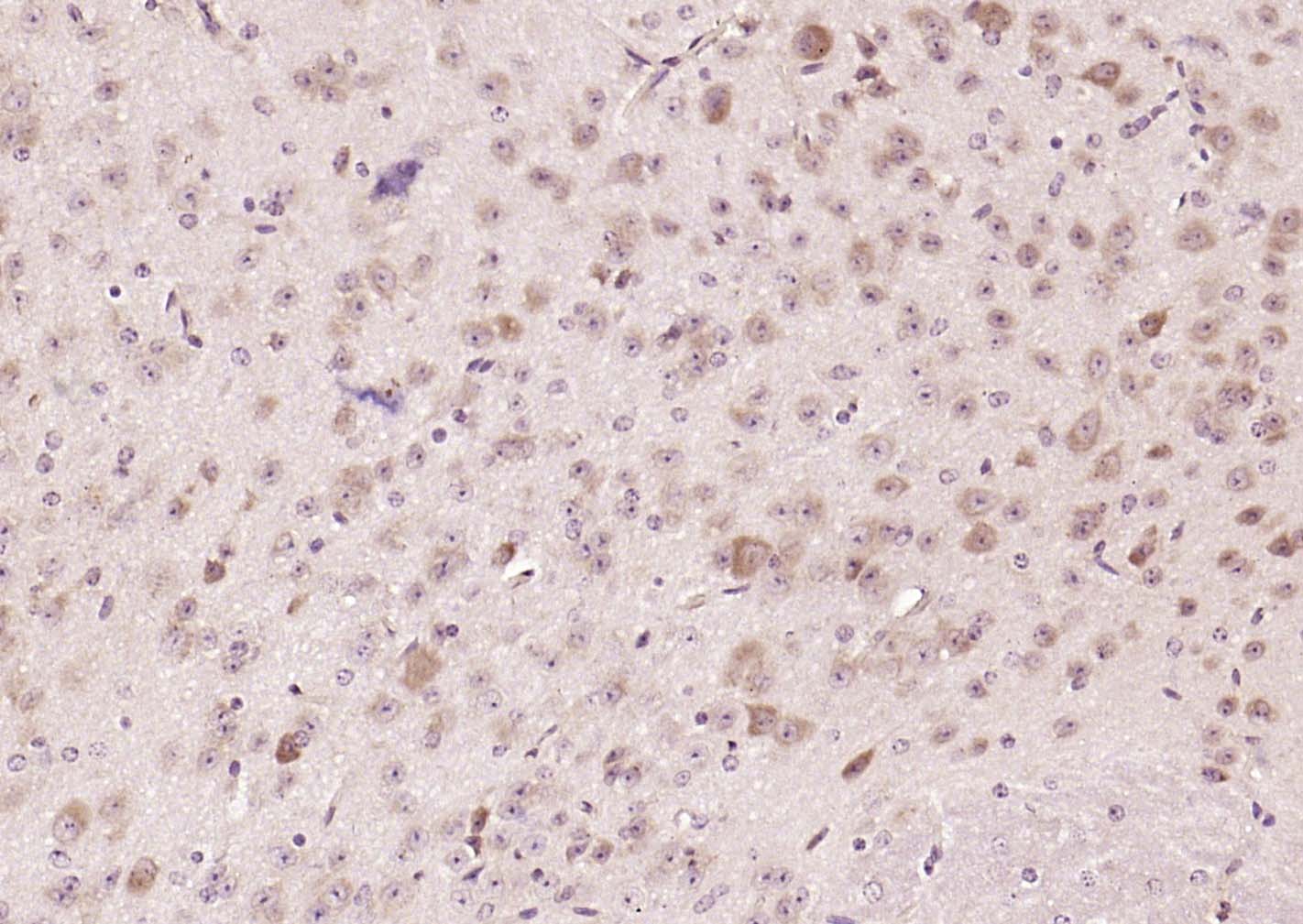 Paraformaldehyde-fixed, paraffin embedded (Mouse brain); Antigen retrieval by boiling in sodium citrate buffer (pH6.0) for 15min; Block endogenous peroxidase by 3% hydrogen peroxide for 20 minutes; Blocking buffer (normal goat serum) at 37°C for 30min; Incubation with (CRTC1 ) Polyclonal Antibody, Unconjugated (bs-25641R) at 1:200 overnight at 4°C, followed by operating according to SP Kit(Rabbit) (sp-0023) instructionsand DAB staining.