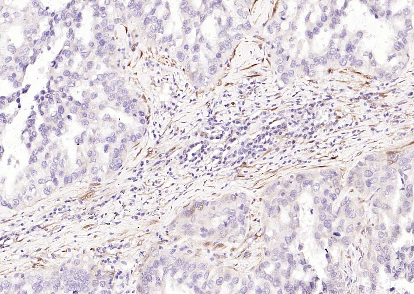 Paraformaldehyde-fixed, paraffin embedded (human lung carcinoma); Antigen retrieval by boiling in sodium citrate buffer (pH6.0) for 15min; Block endogenous peroxidase by 3% hydrogen peroxide for 20 minutes; Blocking buffer (normal goat serum) at 37°C for 30min; Incubation with (PGP9.5) Monoclonal Antibody, Unconjugated (bsm-41257M) at 1:200 overnight at 4°C, followed by operating according to SP Kit(Mouse)(sp-0024) instructionsand DAB staining.