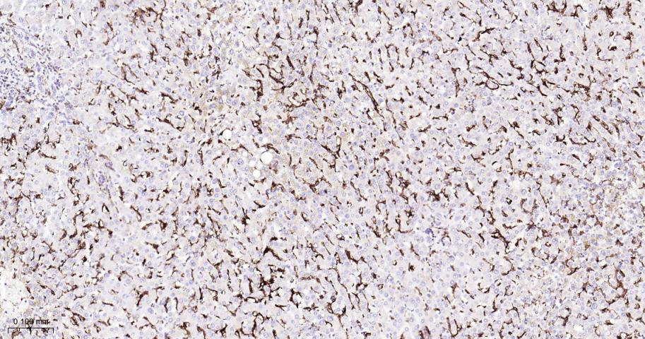 Paraformaldehyde-fixed, paraffin embedded Human Liver; Antigen retrieval by boiling in sodium citrate buffer (pH6.0) for 15 min; Antibody incubation with CD16a Monoclonal Antibody, Unconjugated(bsm-60782R) at 1:200 overnight at 4°C, followed by conjugation to the bs-0295G-HRP and DAB (C-0010) staining.