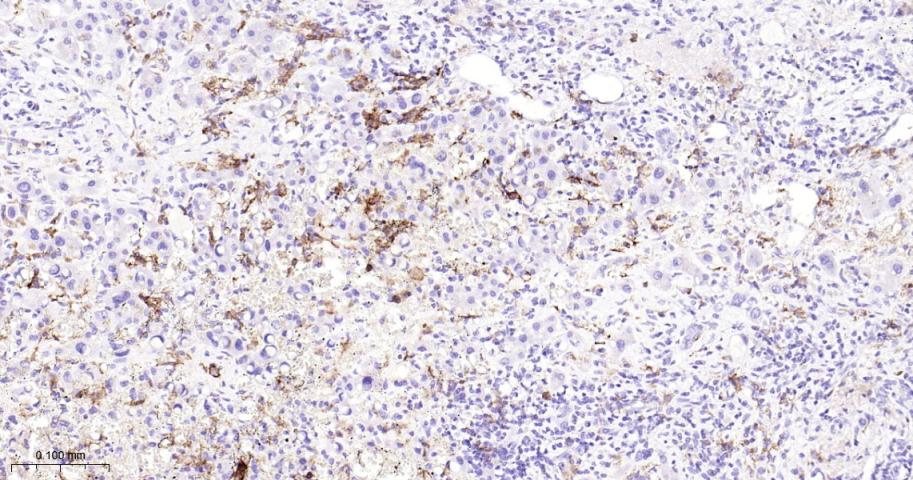 Paraformaldehyde-fixed, paraffin embedded Human Liver Cancer; Antigen retrieval by boiling in sodium citrate buffer (pH6.0) for 15 min; Antibody incubation with CD16a Monoclonal Antibody, Unconjugated(bsm-60782R) at 1:200 overnight at 4°C, followed by conjugation to the bs-0295G-HRP and DAB (C-0010) staining.