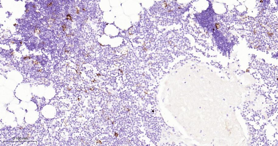 Paraformaldehyde-fixed, paraffin embedded Human Thymus; Antigen retrieval by boiling in sodium citrate buffer (pH6.0) for 15 min; Antibody incubation with CD16a Monoclonal Antibody, Unconjugated(bsm-60782R) at 1:200 overnight at 4°C, followed by conjugation to the bs-0295G-HRP and DAB (C-0010) staining.
