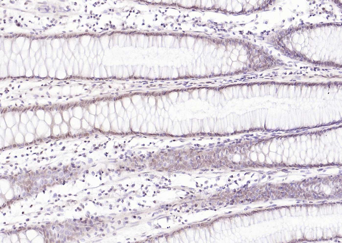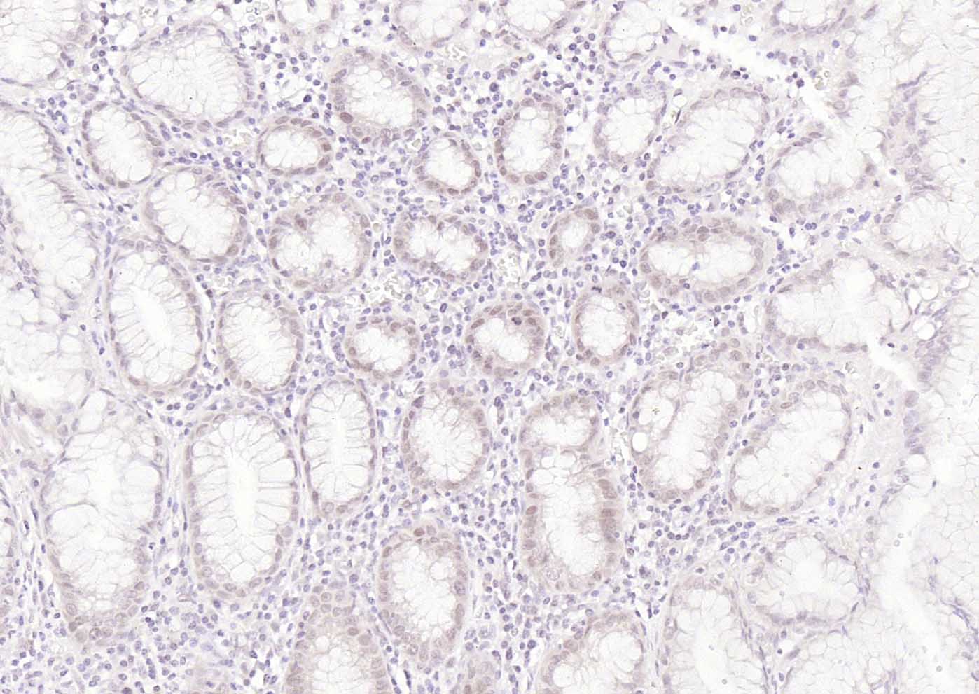 Paraformaldehyde-fixed, paraffin embedded (Human stomach); Antigen retrieval by boiling in sodium citrate buffer (pH6.0) for 15min; Block endogenous peroxidase by 3% hydrogen peroxide for 20 minutes; Blocking buffer (normal goat serum) at 37°C for 30min; Incubation with (MLH1 ) Monoclonal Antibody, Unconjugated (bsm-34145M) at 1:200 overnight at 4°C, followed by operating according to SP Kit(Mouse)(sp-0024) instructionsand DAB staining.