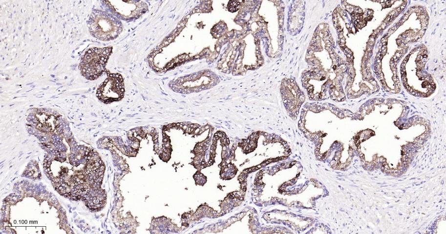 Paraformaldehyde-fixed, paraffin embedded Human Prostate Tumor; Antigen retrieval by boiling in sodium citrate buffer (pH6.0) for 15 min; Antibody incubation with CD57 Monoclonal Antibody, Unconjugated(bsm-60790M) at 1:100 overnight at 4°C, followed by conjugation to the bs-40296G-HRP and DAB (C-0010) staining.