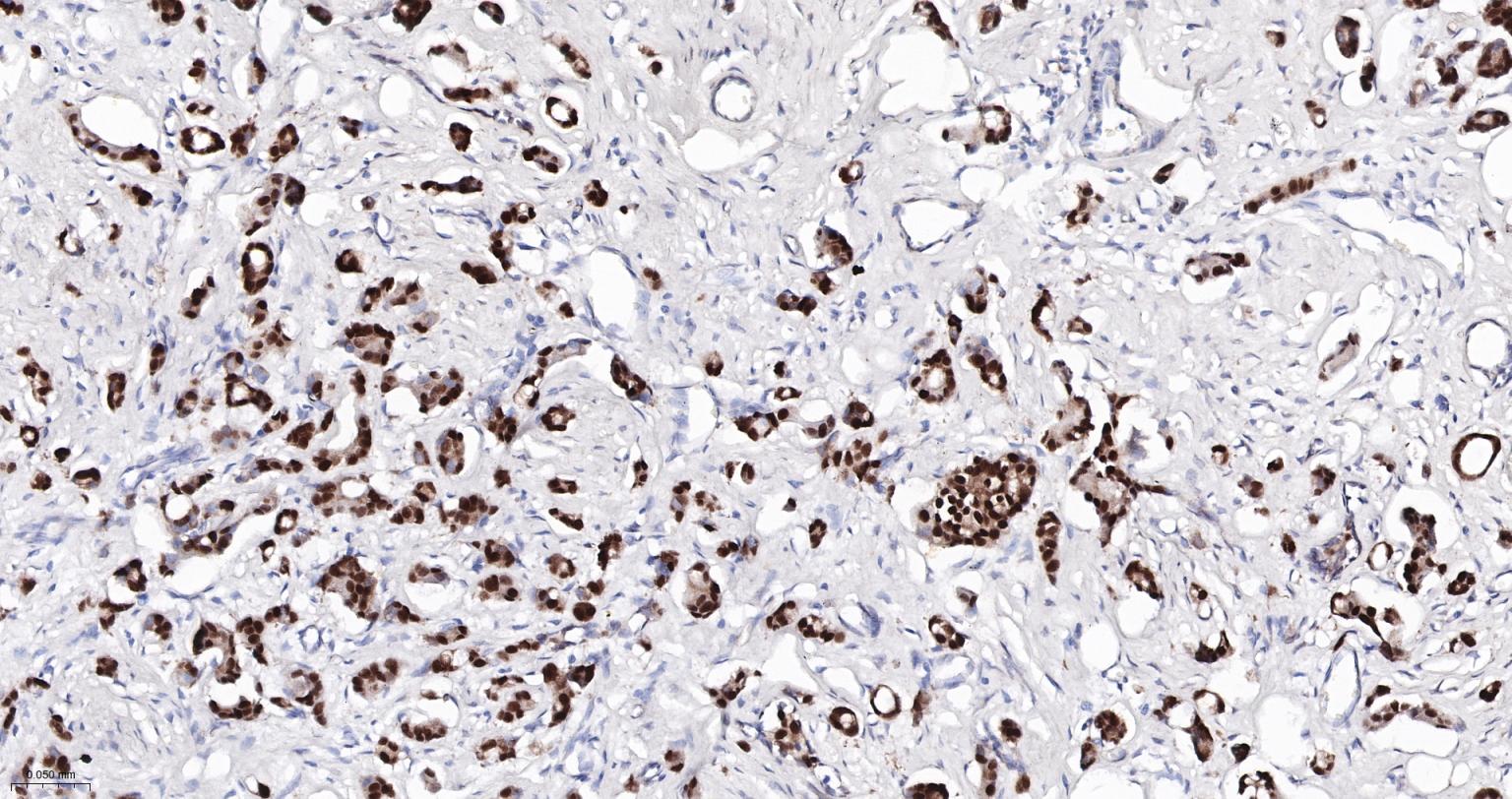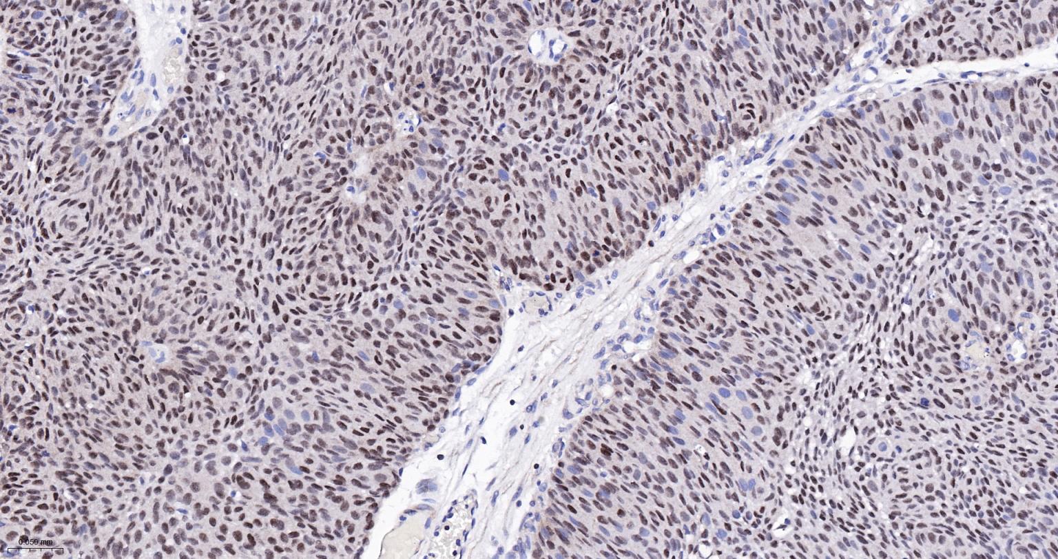 Paraformaldehyde-fixed, paraffin embedded Human Invasive urothelial carcinoma of bladder; Antigen retrieval by boiling in sodium citrate buffer (pH6.0) for 15 min; The section was incubated with GATA3 Monoclonal Antibody, Unconjugated (bsm-60794R) at 1:200 overnight at 4°C, followed by conjugation to the bs-0295G-HRP and DAB (C-0010) staining.