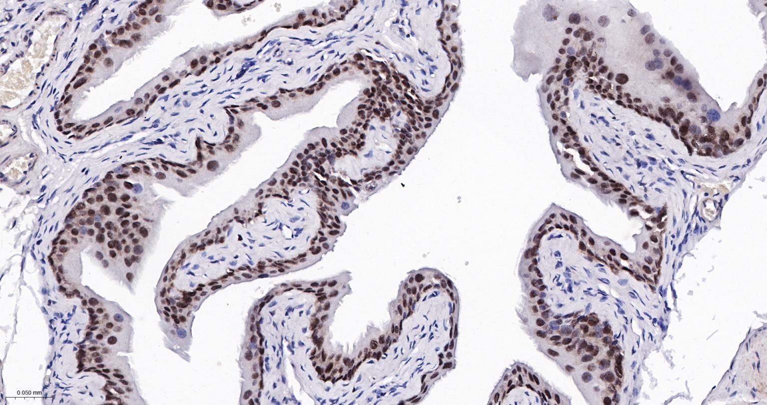 Paraformaldehyde-fixed, paraffin embedded Mouse Bladder; Antigen retrieval by boiling in sodium citrate buffer (pH6.0) for 15 min; The section was incubated with GATA3 Monoclonal Antibody, Unconjugated (bsm-60794R) at 1:200 overnight at 4°C, followed by conjugation to the bs-0295G-HRP and DAB (C-0010) staining.
