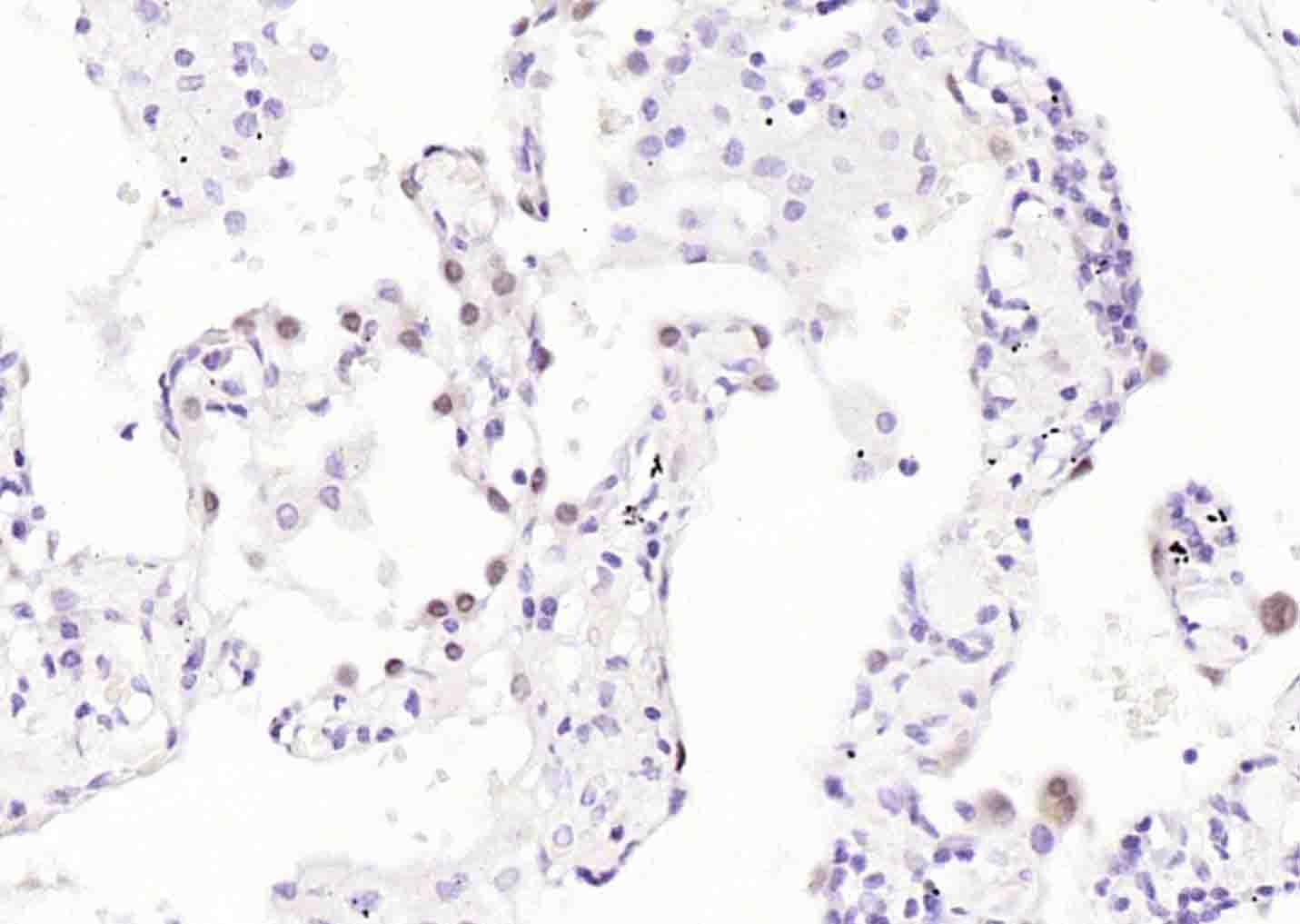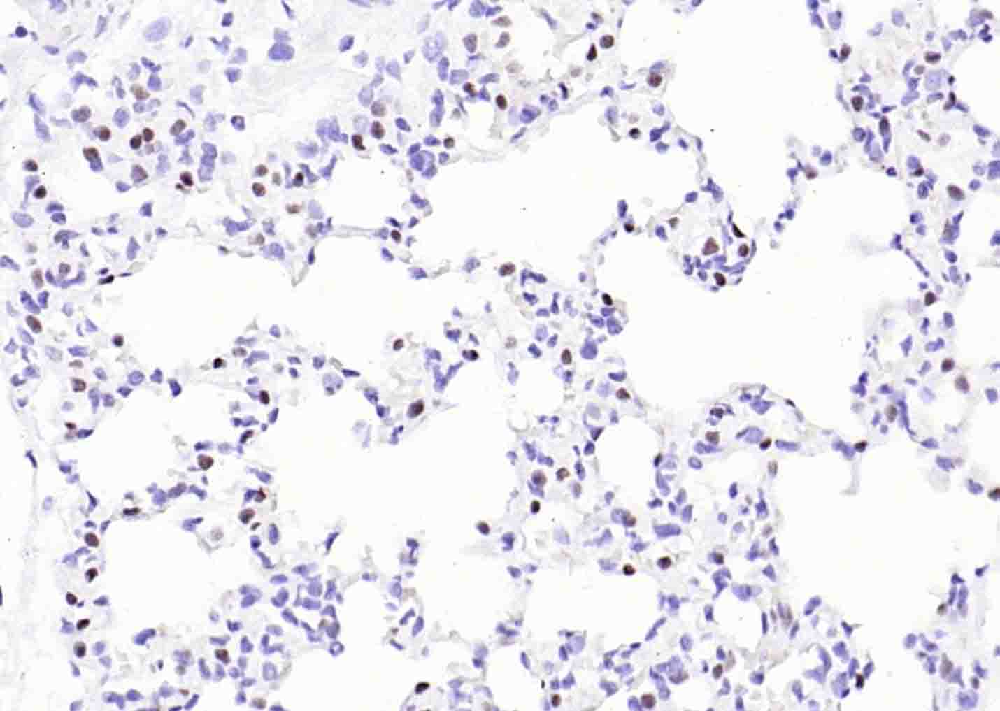 Paraformaldehyde-fixed, paraffin embedded (rat lung); Antigen retrieval by boiling in sodium citrate buffer (pH6.0) for 15min; Block endogenous peroxidase by 3% hydrogen peroxide for 20 minutes; Blocking buffer (normal goat serum) at 37°C for 30min; Incubation with (TTF1/NKX2-1 ) Monoclonal Antibody, Unconjugated (bsm-34158M) at 1:200 overnight at 4°C, followed by operating according to SP Kit(Mouse)(sp-0024) instructionsand DAB staining.