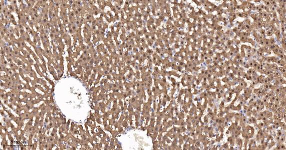 Paraformaldehyde-fixed, paraffin embedded Mouse Liver; Antigen retrieval by boiling in sodium citrate buffer (pH6.0) for 15 min; Antibody incubation with Arginase 1 Monoclonal Antibody, Unconjugated(bsm-56207R) at 1:200 overnight at 4°C, followed by conjugation to the bs-0295G-HRP and DAB (C-0010) staining.