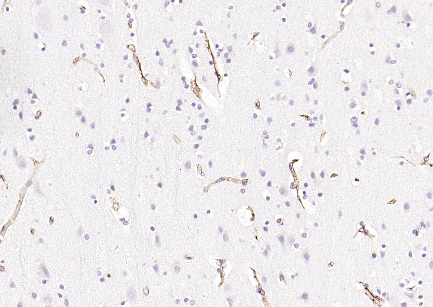 Paraformaldehyde-fixed, paraffin embedded (human brain); Antigen retrieval by boiling in sodium citrate buffer (pH6.0) for 15min; Block endogenous peroxidase by 3% hydrogen peroxide for 20 minutes; Blocking buffer (normal goat serum) at 37°C for 30min; Incubation with (HLA E) Polyclonal Antibody, Unconjugated (bs-42249R) at 1:200 overnight at 4°C, followed by operating according to SP Kit(Rabbit) (sp-0023) instructionsand DAB staining.