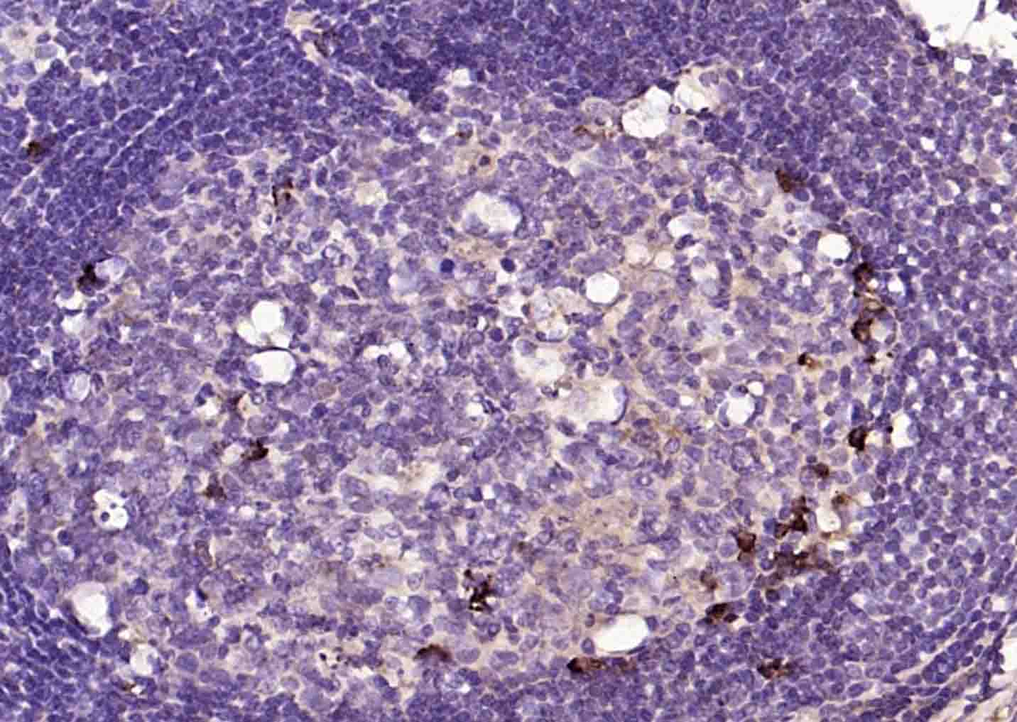 Paraformaldehyde-fixed, paraffin embedded (human lymphoid); Antigen retrieval by boiling in E sodium citrate buffer (pH6.0) for 15min; Block endogenous peroxidase by 3% hydrogen peroxide for 20 minutes; Blocking buffer (normal goat serum) at 37°C for 30min; Incubation with (Human Lambda chain) Monoclonal Antibody, Unconjugated (bsm-42319M) at 1:200 overnight at 4°C, followed by operating according to SP Kit(Mouse)(sp-0024) instructionsand DAB staining.
