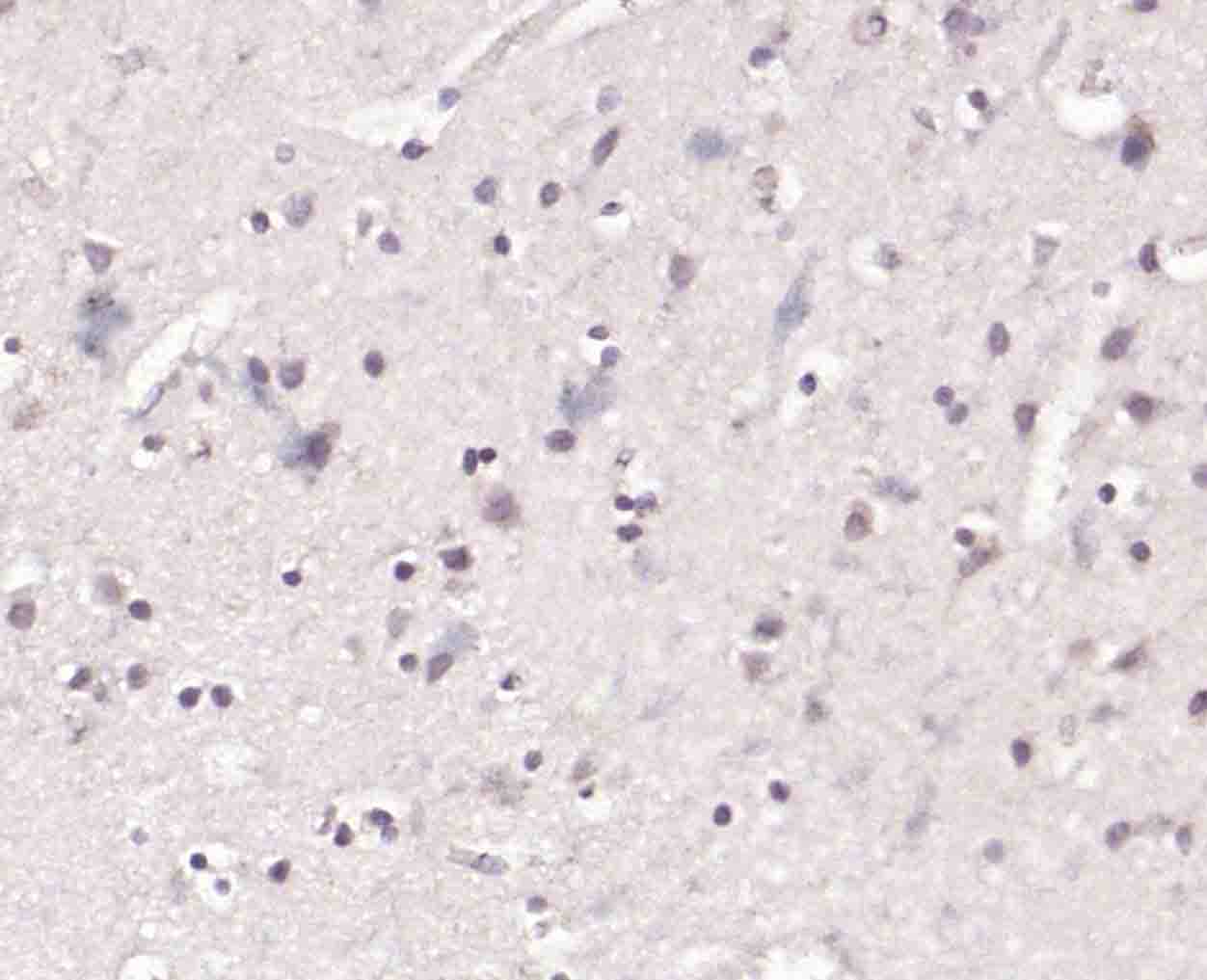 Paraformaldehyde-fixed, paraffin embedded (human brain); Antigen retrieval by boiling in sodium citrate buffer (pH6.0) for 15min; Block endogenous peroxidase by 3% hydrogen peroxide for 20 minutes; Blocking buffer (normal goat serum) at 37°C for 30min; Incubation with (phospho-GSK3B (Ser9) ) Polyclonal Antibody, Unconjugated (bs-25483R) at 1:200 overnight at 4°C, followed by operating according to SP Kit(Rabbit) (sp-0023) instructionsand DAB staining.