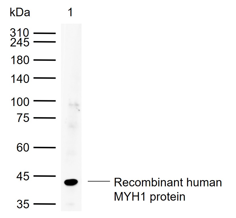 Lane 1: Recombinant human MYH1 protein, N-His(bs-42269P)
