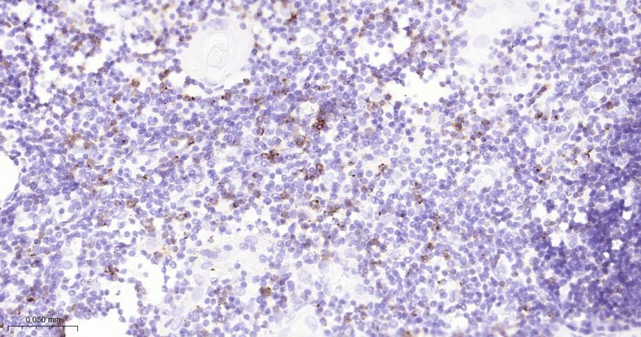 Paraformaldehyde-fixed, paraffin embedded Human Thymus; Antigen retrieval by boiling in sodium citrate buffer (pH6.0) for 15 min; The section was incubated with CD8A Monoclonal Antibody, Unconjugated (bsm-34251M) at 1:1500 overnight at 4°C, followed by conjugation to the bs-40296G-HRP and DAB (C-0010) staining.