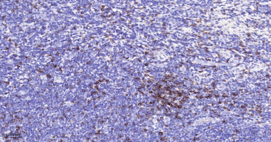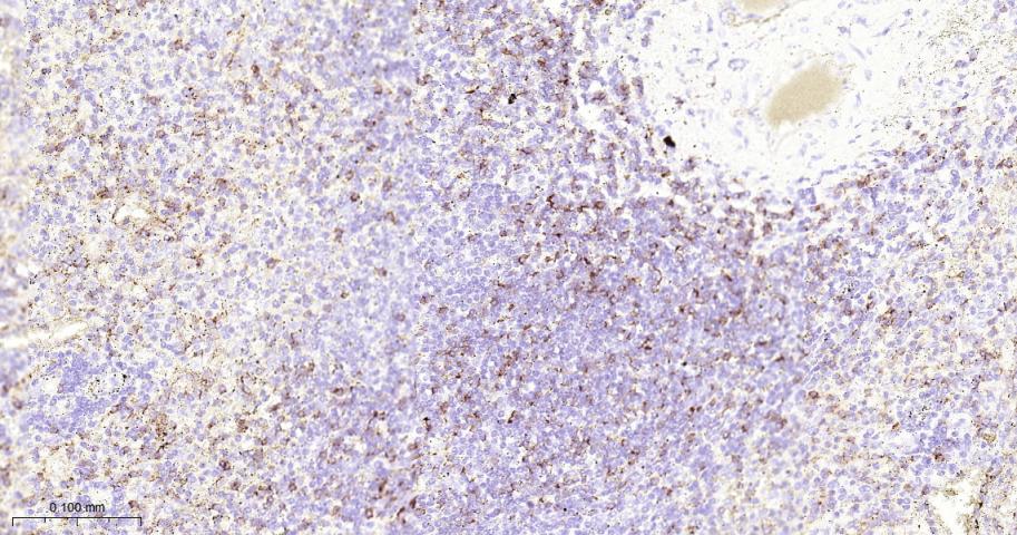 Paraformaldehyde-fixed, paraffin embedded Human Spleen; Antigen retrieval by boiling in sodium citrate buffer (pH6.0) for 15 min; The section was incubated with CD8A Monoclonal Antibody, Unconjugated (bsm-34251M) at 1:1500 overnight at 4°C, followed by conjugation to the bs-40296G-HRP and DAB (C-0010) staining.