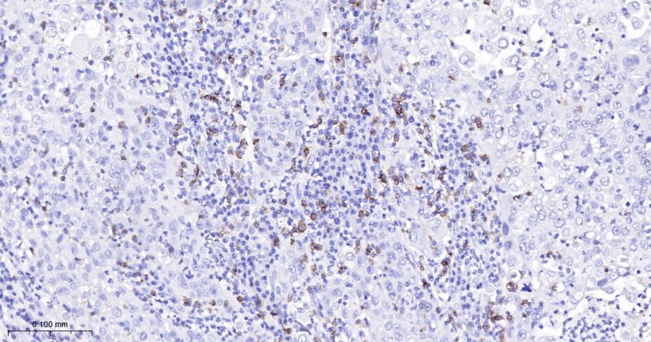 Paraformaldehyde-fixed, paraffin embedded Human lung squamous cell carcinoma; Antigen retrieval by boiling in sodium citrate buffer (pH6.0) for 15 min; The section was incubated with CD8A Monoclonal Antibody, Unconjugated (bsm-34251M) at 1:1500 overnight at 4°C, followed by conjugation to the bs-40296G-HRP and DAB (C-0010) staining.