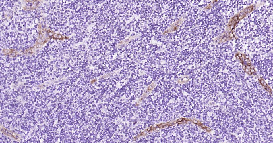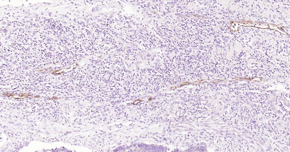 Paraformaldehyde-fixed, paraffin embedded Human Tonsil; Antigen retrieval by boiling in sodium citrate buffer (pH6.0) for 15 min; Antibody incubation with E-Selectin Monoclonal Antibody, Unconjugated(bsm-43646M) at 1:200 overnight at 4°C, followed by conjugation to the SP Kit (Mouse, sp-0024) and DAB (C-0010) staining.