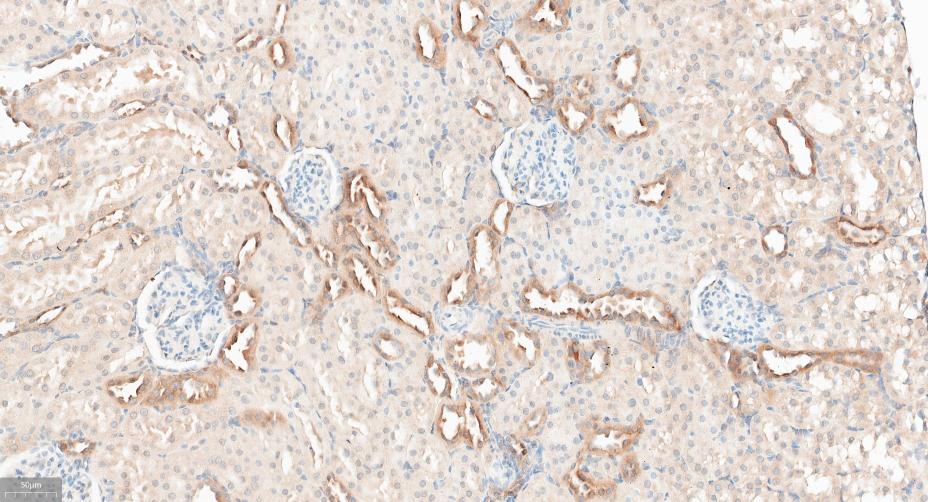 Paraformaldehyde-fixed, paraffin embedded Rat Kidney; Antigen retrieval by boiling in sodium citrate buffer (pH6.0) for 15 min; Antibody incubation with GABARAP Monoclonal Antibody, Unconjugated(bsm-61023R) at 1:300 overnight at 4°C, followed by conjugation to the SP Kit (Rabbit, SP-0023)and DAB (C-0010) staining.
