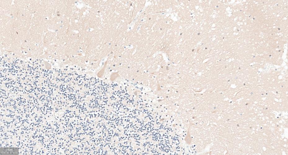 Paraformaldehyde-fixed, paraffin embedded Rat Cerebellum; Antigen retrieval by boiling in sodium citrate buffer (pH6.0) for 15 min; Antibody incubation with GABARAP Monoclonal Antibody, Unconjugated(bsm-61023R) at 1:300 overnight at 4°C, followed by conjugation to the SP Kit (Rabbit, SP-0023)and DAB (C-0010) staining.