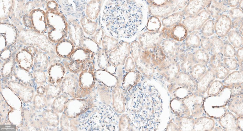Paraformaldehyde-fixed, paraffin embedded Human Kidney; Antigen retrieval by boiling in sodium citrate buffer (pH6.0) for 15 min; Antibody incubation with GABARAP Monoclonal Antibody, Unconjugated(bsm-61023R) at 1:300 overnight at 4°C, followed by conjugation to the SP Kit (Rabbit, SP-0023)and DAB (C-0010) staining.