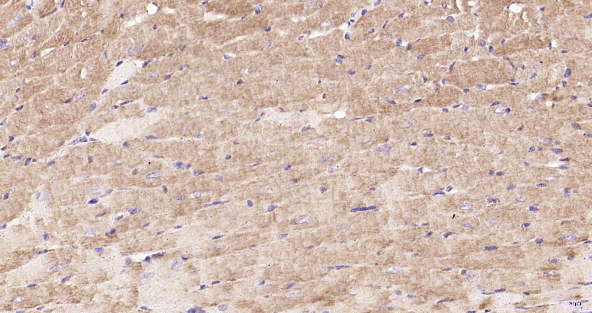 Paraformaldehyde-fixed, paraffin embedded Rat Heart; Antigen retrieval by boiling in sodium citrate buffer (pH6.0) for 15 min; Antibody incubation with ULK1 Monoclonal Antibody, Unconjugated(bsm-61039R) at 1:100 overnight at 4°C, followed by conjugation to the SP Kit(Rabbit, SP-0023) and DAB (C-0010) staining.