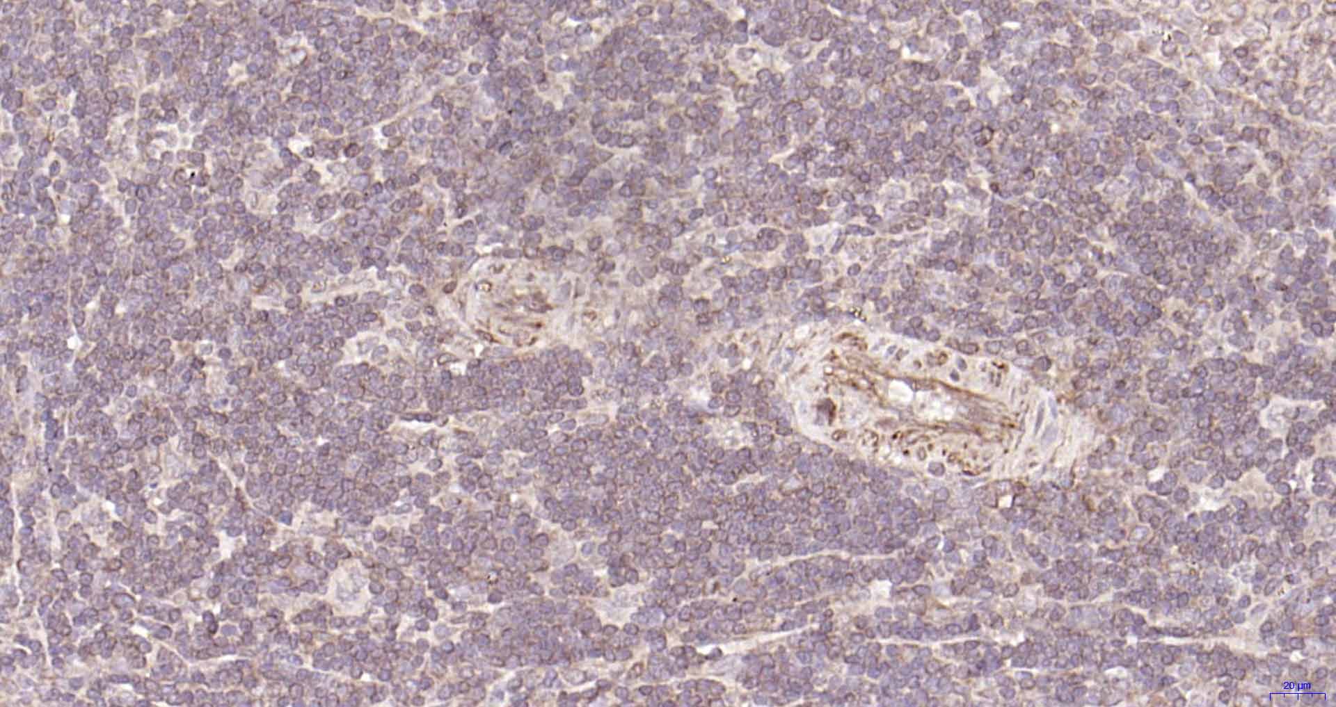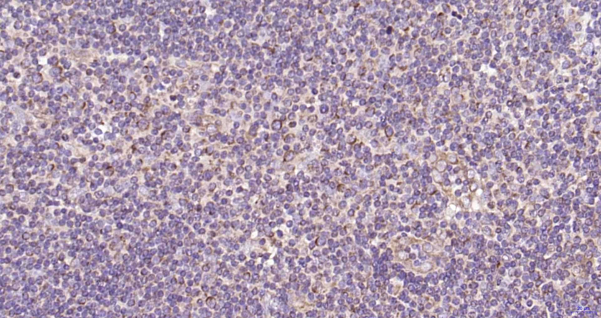 Paraformaldehyde-fixed, paraffin embedded Rat Spleen; Antigen retrieval by boiling in sodium citrate buffer (pH6.0) for 15 min; Antibody incubation with ULK1 Monoclonal Antibody, Unconjugated(bsm-61039R) at 1:100 overnight at 4°C, followed by conjugation to the SP Kit(Rabbit, SP-0023) and DAB (C-0010) staining.
