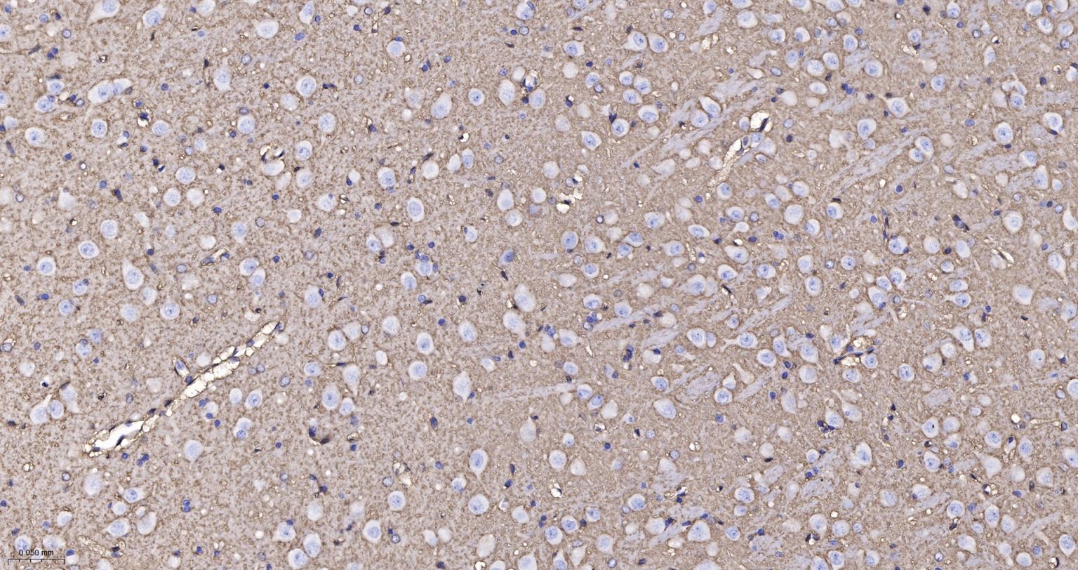 Paraformaldehyde-fixed, paraffin embedded Rat Cerebrum; Antigen retrieval by boiling in sodium citrate buffer (pH6.0) for 15 min; Antibody incubation with AQP4 Monoclonal Antibody, Unconjugated(bsm-61035R) at 1:100 overnight at 4°C, followed by conjugation to the SP Kit(Rabbit, SP-0023) and DAB (C-0010) staining.