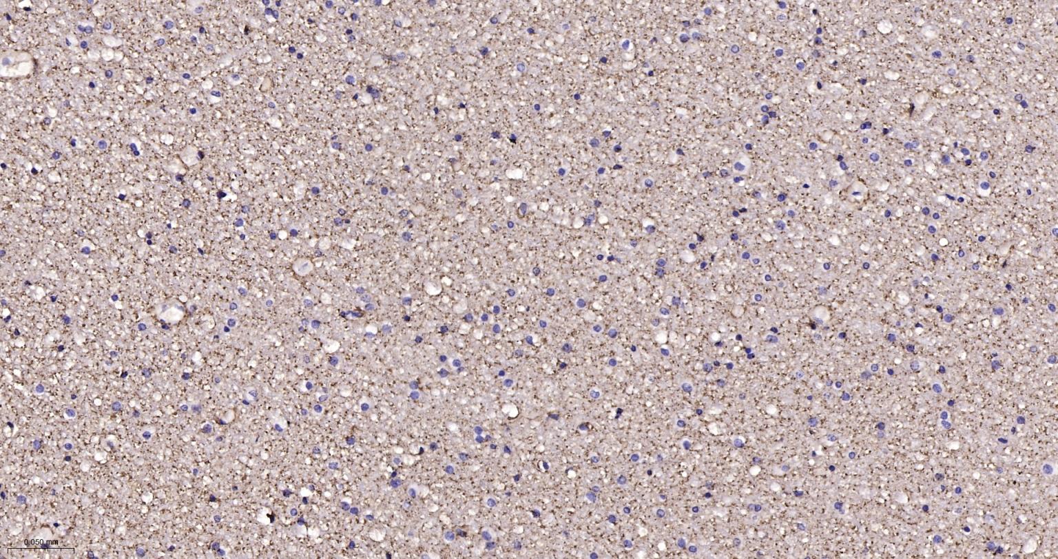 Paraformaldehyde-fixed, paraffin embedded Human Cerebrum; Antigen retrieval by boiling in sodium citrate buffer (pH6.0) for 15 min; Antibody incubation with AQP4 Monoclonal Antibody, Unconjugated(bsm-61035R) at 1:100 overnight at 4°C, followed by conjugation to the SP Kit (Rabbit, SP-0023) and DAB (C-0010) staining.