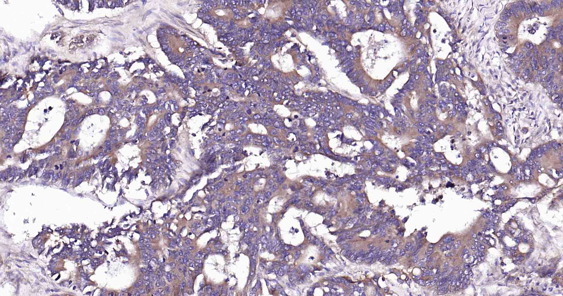 Paraformaldehyde-fixed, paraffin embedded Human Colon Cancer; Antigen retrieval by boiling in sodium citrate buffer (pH6.0) for 15 min; Antibody incubation with RalA Monoclonal Antibody, Unconjugated(bsm-61044R) at 1:200 overnight at 4°C, followed by conjugation to the SP Kit (Rabbit, SP-0023) and DAB (C-0010) staining.