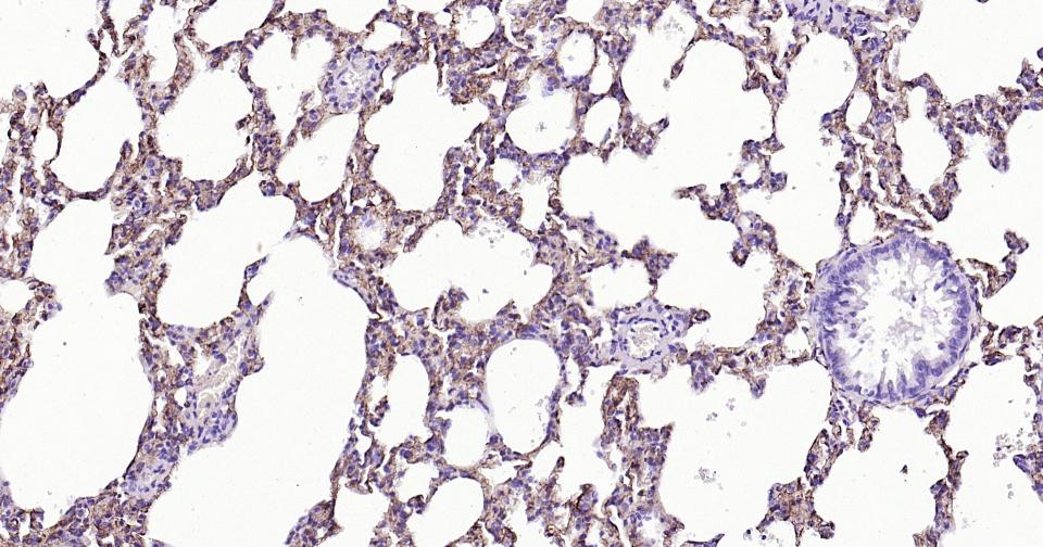 Paraformaldehyde-fixed, paraffin embedded Rat Lung; Antigen retrieval by boiling in sodium citrate buffer (pH6.0) for 15 min; Antibody incubation with Tau-4 Monoclonal Antibody, Unconjugated(bsm-41804M) at 1:800 overnight at 4°C, followed by conjugation to the SP Kit (Mouse, sp-0024) and DAB (C-0010) staining.