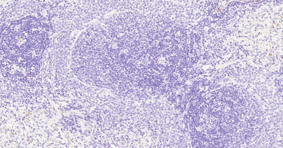 (Negative control)Paraformaldehyde-fixed, paraffin embedded Mouse Spleen; Antigen retrieval by boiling in sodium citrate buffer (pH6.0) for 15 min; Antibody incubation with Tau-4 Monoclonal Antibody, Unconjugated(bsm-41804M) at 1:600 overnight at 4°C, followed by conjugation to the SP Kit (Mouse, sp-0024) and DAB (C-0010) staining.