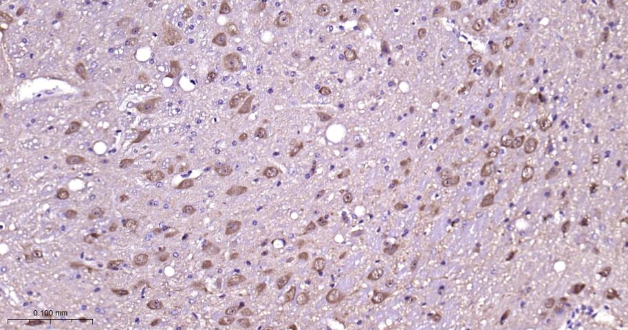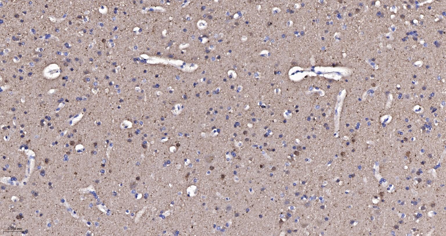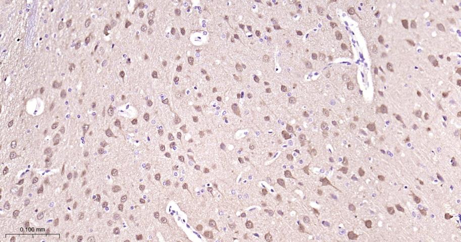 Paraformaldehyde-fixed, paraffin embedded Rat Cerebrum; Antigen retrieval by boiling in sodium citrate buffer (pH6.0) for 15 min; Antibody incubation with PGP9.5 Monoclonal Antibody, Unconjugated(bsm-41257R) at 1:200 overnight at 4°C, followed by conjugation to the bs-0295G-HRP and DAB (C-0010) staining.