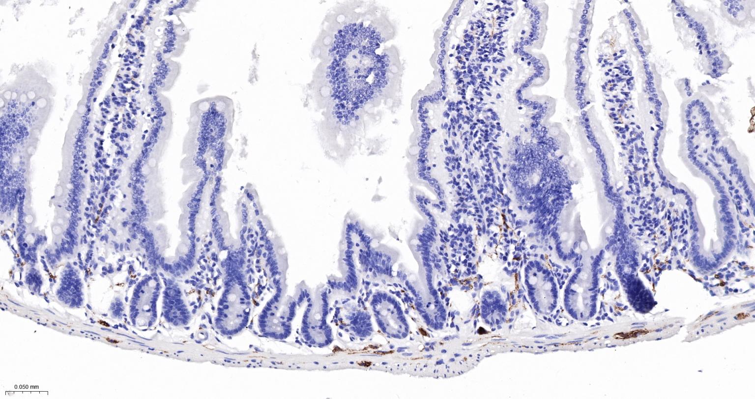 Paraformaldehyde-fixed, paraffin embedded Mouse Small Intestine; Antigen retrieval by boiling in sodium citrate buffer (pH6.0) for 15 min; Antibody incubation with PGP9.5 Monoclonal Antibody, Unconjugated(bsm-41257R) at 1:1500 overnight at 4°C, followed by conjugation to the bs-0295G-HRP and DAB (C-0010) staining.