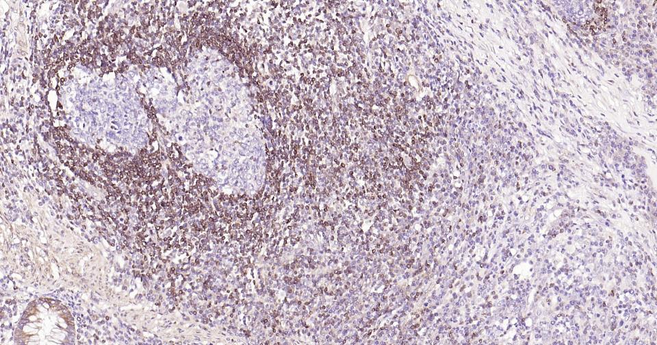 Paraformaldehyde-fixed, paraffin embedded Human Lymph; Antigen retrieval by boiling in sodium citrate buffer (pH6.0) for 15 min; Antibody incubation with Bcl-2 Monoclonal Antibody, Unconjugated(bsm-61074R) at 1:200 overnight at 4°C, followed by conjugation to the SP Kit (Rabbit, SP-0023)and DAB (C-0010) staining.